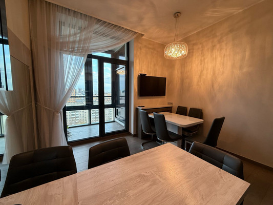 Стильная, светлая, уютная квартира на 10м этаже с видом на центр Москвы с ощущением простора за счет высоких потолков (3,1 м), с качественным ремонтом, мебелью и бытовой техникой. В каждой комнате установлены кондиционеры Mitsubishi и блэкаут шторы, есть водонагреватель на случай отключения горячей воды.Линейная планировка: 2 изолированные жилые комнаты, просторная кухня-гостиная, 2 полноценных с/у с ванной и с душевой кабиной, отдельная вместительная гардеробная, удобная прихожая и 2 лоджии с панорамным остеклением.Сдается на длительный срок.