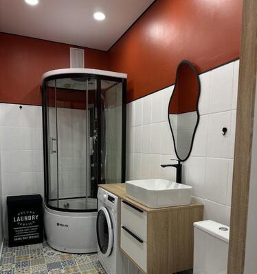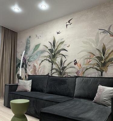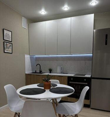 Квартира полностью укомплектована бытовой техникой: стиральная машина, холодильник, духовой шкаф, варочная панель, микроволновая печь, электрический чайник, телевизор со смарт-тв. Для хранения вещей вместительная гардеробная.