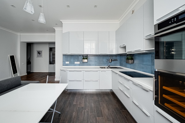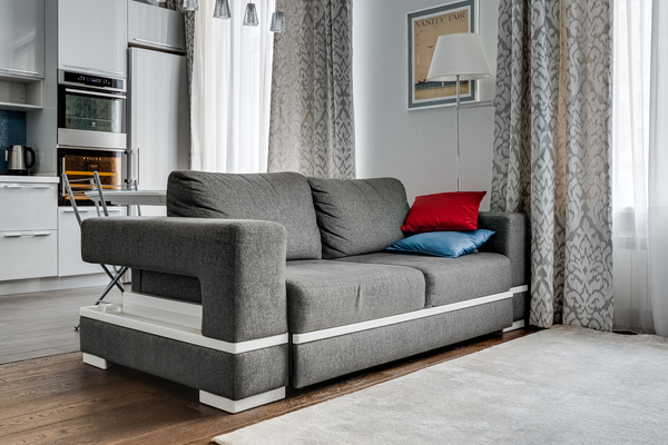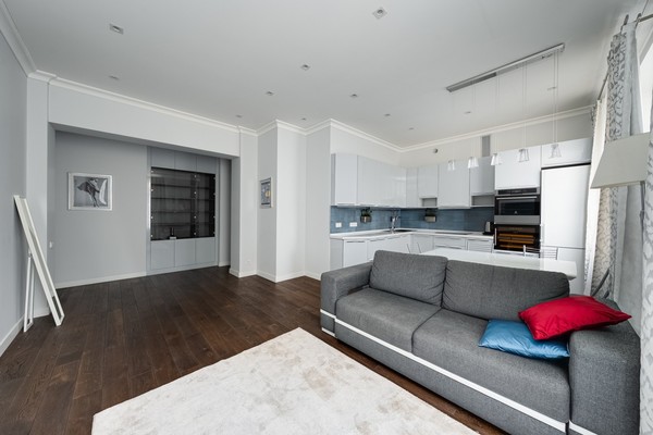 В квартире 2 кондиционера, 2 телевизора, холодильник, посудомоечная и стиральная машины, индукционная плита, встроенный винный шкаф, регулировка яркости света. Предусмотрено много встроенных систем хранения: лаковый шкаф во всю стену в спальне, шкаф в прихожей и книжный шкаф в гостиной, большое количество ящиков на кухне. Широкая двуспальная кровать с ортопедическим матрасом в спальне, удобный раскладывающийся диван в гостиной. Маленький уютный балкон.