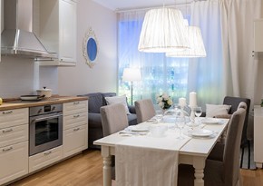 Жилые апартаменты бизнес-класса площадью от 28 до 185 м2 продаются с готовой премиальной отделкой уже «под ключ», на выбор покупателей – 4 варианта дизайна отделки: традиционный и современный, в темном и светлом решениях. На сегодняшний день стоимость квадратного метра начинается от 155 000 руб. Застройщик ведет продажи жилых апартаментов по 214 –ФЗ.