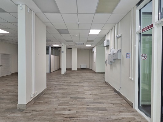 Помещение имеет 6 витринных окон со стороны дороги с активным пешеходным трафиком. Благодаря увеличенным окнам помещение очень светлое.