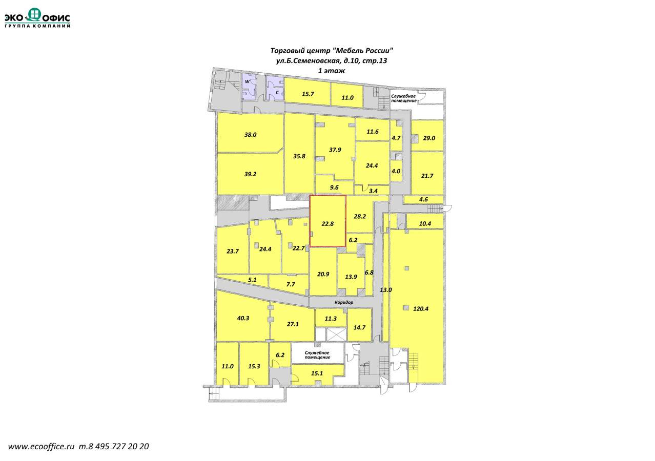 Мы - собственник коммерческой недвижимости ГК «ЭКООФИС»! Прямая аренда от собственника ГК "Экоофис"! Сдаем в аренду площадь свободного назначения 22.8 кв. м. , в ТЦ "Мебель", 2 мин. м. Электрозаводская, вблизи ТТК и Садового кольца. Помещение расположено на 1/3 этаж. здания. Отделка: пол - ламинат, стены - окрашены водоэмульсионной краской, потолок подвесной типа «Армстронг». Аренда: 25 000 руб. /месяц, включая эксплуатационные расходы и НДС. Данное помещение под пункт выдачи заказов НЕ ПОДХОДИТ! Провайдеры: ПАО "Ростелеком", ЗАО «Искрателеком». В ТЦ обеспечены все необходимые условия для подъезда, разгрузки и погрузки товаров. Аренда площадей в крупном мебельном торговом центре предоставляет ряд преимуществ, одно из которых - универсальность. Его посетители получают возможность приобрести широкий спектр товаров и услуг в одном комплексе. [#7256871#]