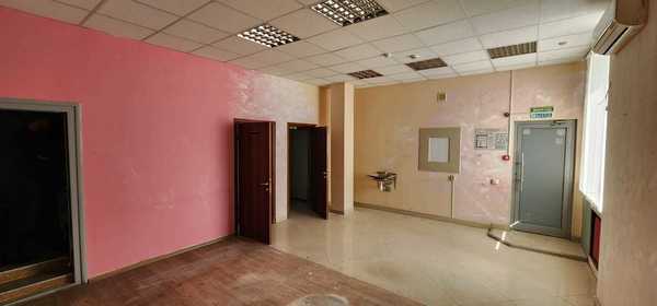 Помещение правильной прямоугольной формы, большой зал и подсобные комнаты. Два окна зашиты в настоящее время. Есть отдельные сан.узлы на этом же этаже, при желании можно организовать свой, т.к. есть выход на мокрые точки.