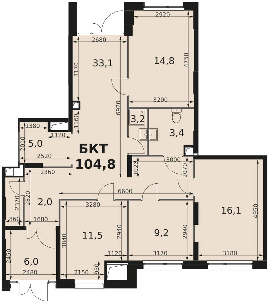 - Общая площадь 104.8 м²