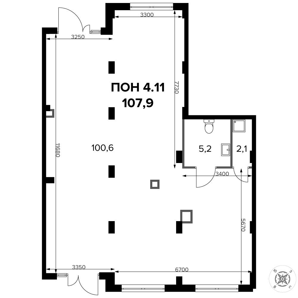 - Общая площадь 107.6 м²