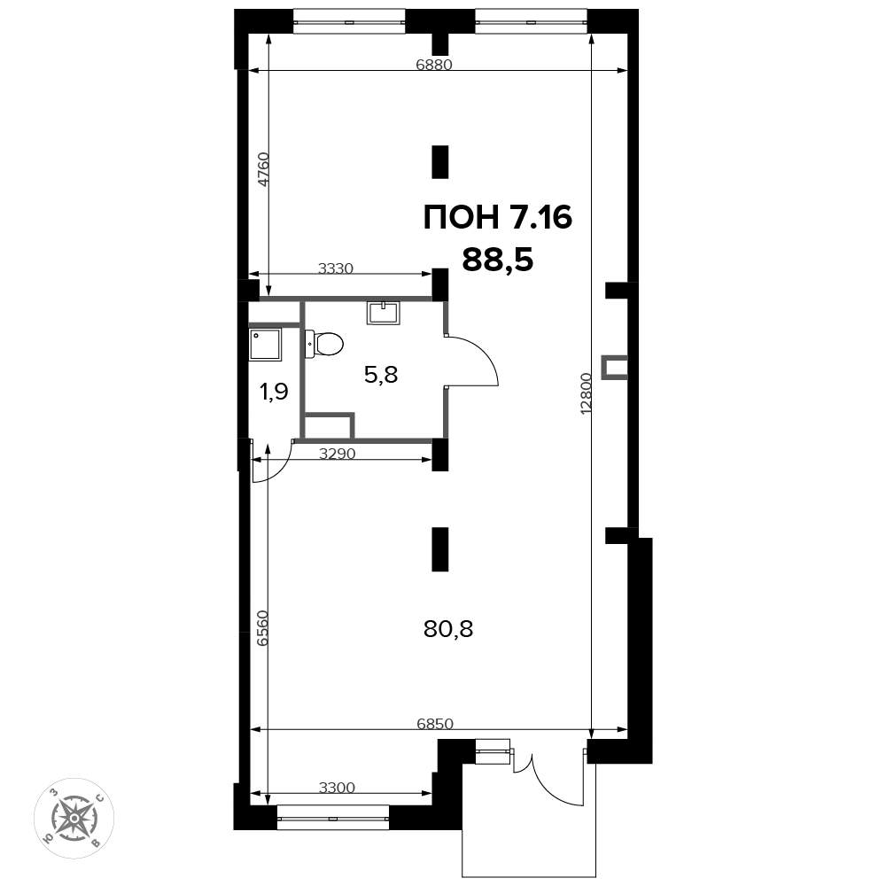 - Общая площадь 88.6 м²
