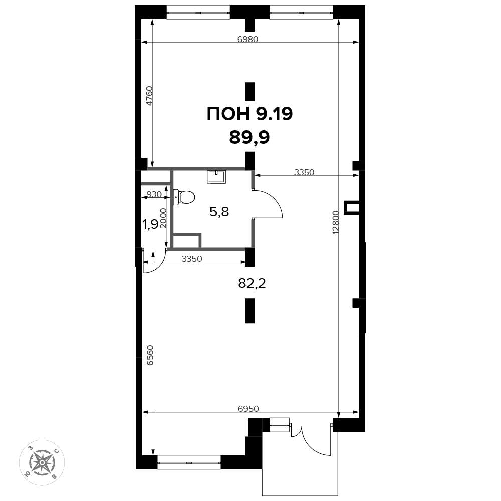 - Общая площадь 90.1 м²