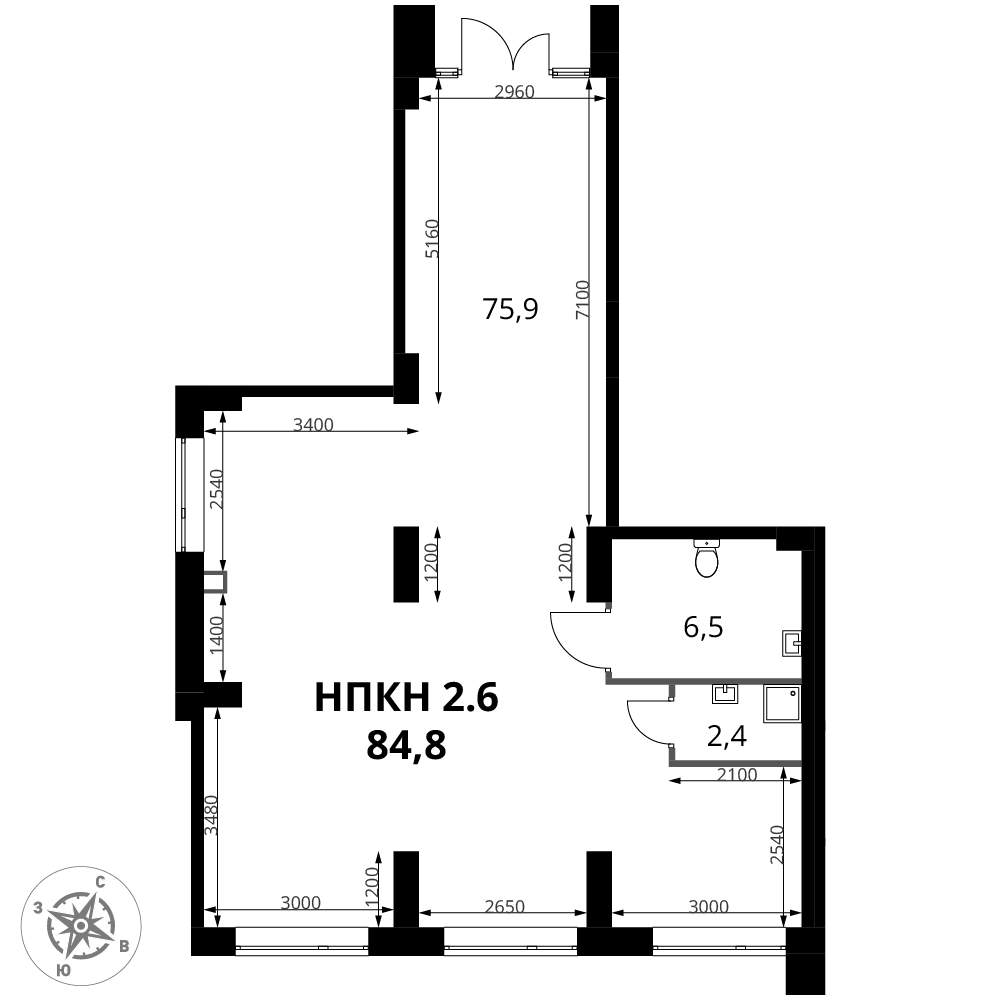 - Общая площадь 84.8 м²