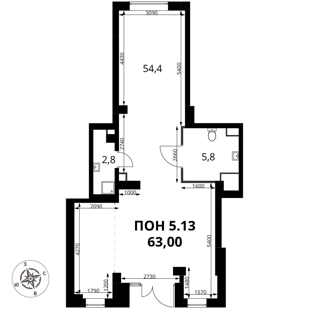 - Общая площадь 63 м²