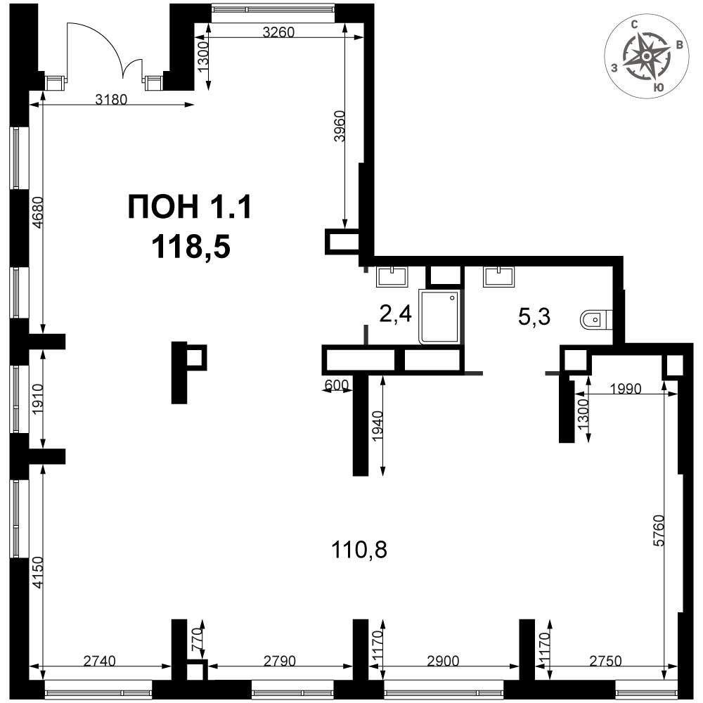 - Общая площадь 118.5 м²