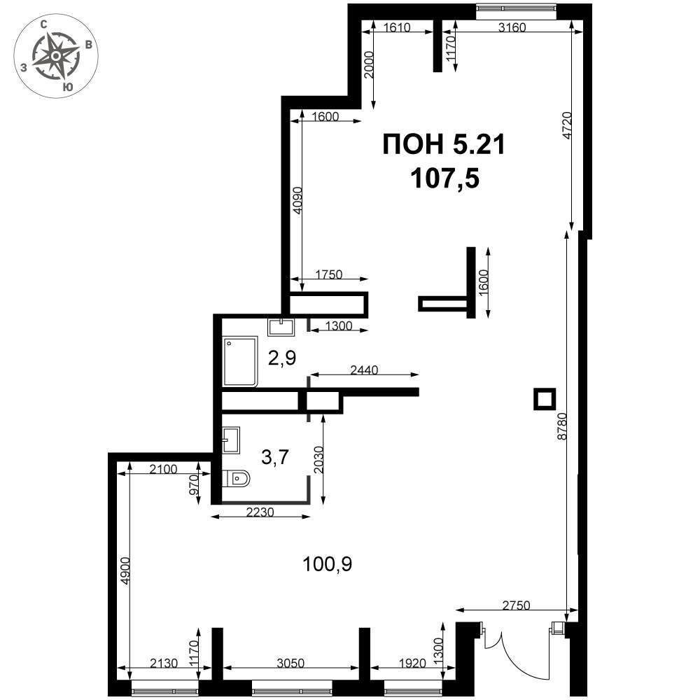 - Общая площадь 107.5 м²