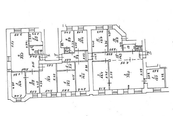 Помещение разделено на комнаты (кабинетного типа), два входа, парадный и обычный.