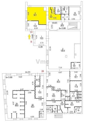 - основной (торговый) зал с большим окном. Потолки от 3.05 м до 3.25 м - есть небольшой уклон.