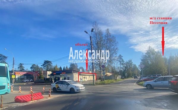 Остановка общественного транспорта прямо у помещения, в 200 м ж/д станция «Песочная», в 130 м отделение Почты России, администрация МО п. Песочный, вокруг жилой массив, в 600 м пляж на озере Курортного лесопарка, что увеличивает поток покупателей в курортный дачный сезон.