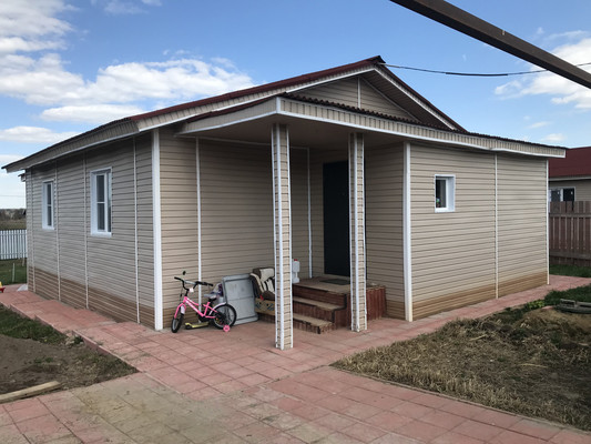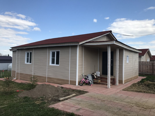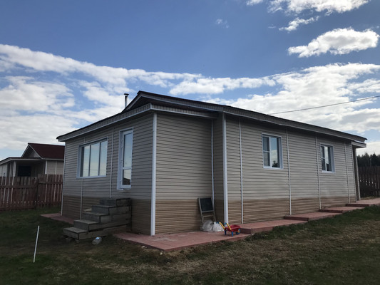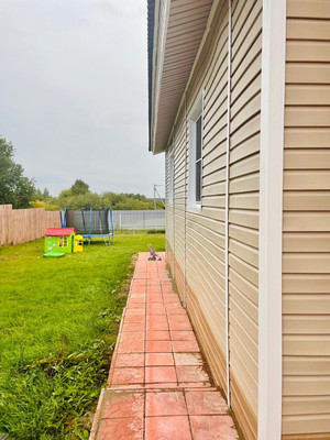 Дом 2021г. постройки расположен в дальней части поселка, на тупиковой улочке у перелеска.Блочный высокий фундамент, материал стен брус 150Х100. Утеплен. Обшит светлым сайдингом.Крыша ондулин.Окна двойной стеклопакет.Вокруг дома сделана отмостка из плитки.
