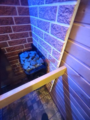 Кирпичная финская печь,английский камин, сан. узел разделенный на душевую, туалет и сауну вместимостью 4 человека.