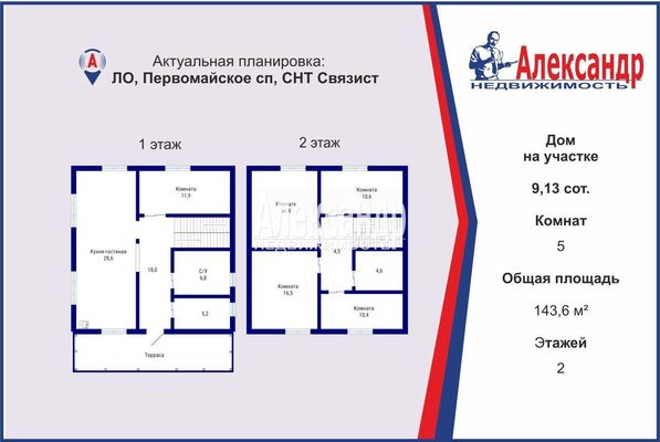 1694842 - Предлагается к продаже двухэтажный дом общей площадью 143,6 кв.м. с просторной террасой 9х2 на всю длину дома в Выборгском районе Ленинградской области, сельское поселение Первомайское, пос. Подгорное, СНТ Связист-3. До ближайшей станции ж/д Зеленогорск 24 км. Расстояние до КАД 50 км. До метро Парнас 63 км.