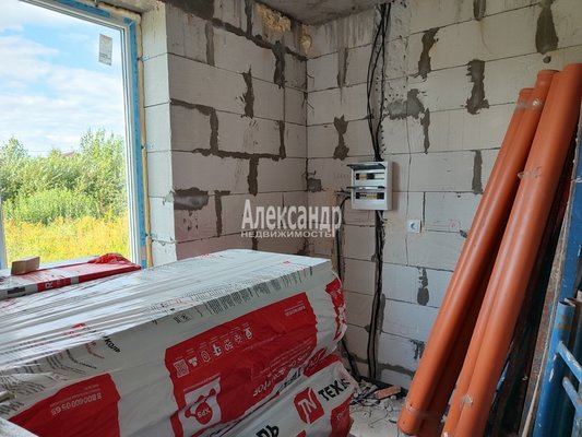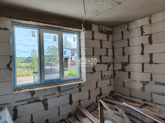 1694077 Продается двухэтажный жилой дом в деревне Сойкино в пяти минутах езды от г. Ломоносов. Дом из пено-газобетона, стоит на железобетонных колоннах и монолитной плите. Перекрытия железобетонные, стяжка пола сделана на двух этажах, бетонная лестница, стеклопакеты, подведено электричество, получены документы на ввод газа в дом, сделан ввод и вывод сантехнических труб. Крыша - металлочерепица. Есть чердак и выход на террасу. Дом без отделки. На участок сделан заезд. Прямая продажа.