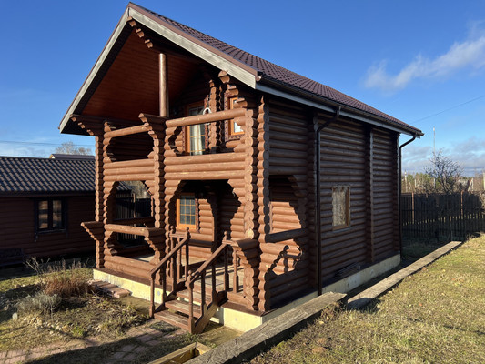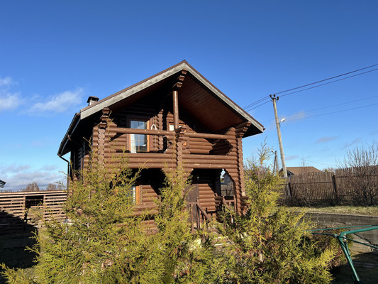 Нарядный 2-эт. коттедж 90,0 м2. Год постройки 2019г.Материал стен оциллиндрованное бревно диаметром 220 мм. Обработано снаружи пропиткой темно-коричневого цвета. Внутри интерьер цвета натурального дерева.Фундамент ж/б ленточный, на глубину до 1,5м.Крыша металлочерепица. Выполнено водоотведение.Вокруг дома сделан дренаж, отмостка выложена плиткой.Окна двойной стеклопакет.Полы деревянные, утепление 250 мм, крыши 200мм.Заведен оптико-волоконный интернет.Планировка: На входе в дом терраса1 эт. Столовая-гостиная с камином, с/у из двух помещений (душевая комната и туалет с раковиной)2 эт Светлая спальня с балконом.