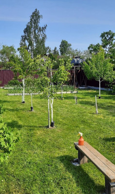 Участок огорожен металлическим профлистом высотой 2 м. Дренажная система. Посадки яблонь, слив, вишни, груш, смородины, крыжовника, малины, клубники и цветов.
