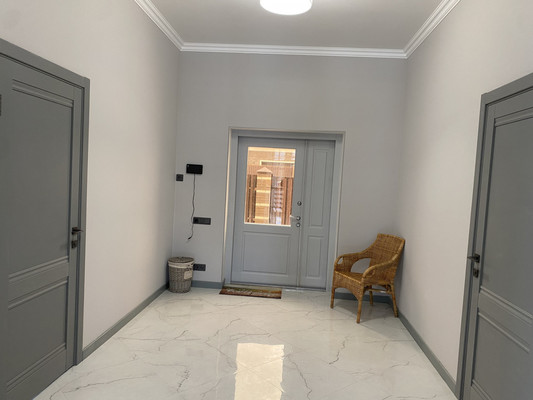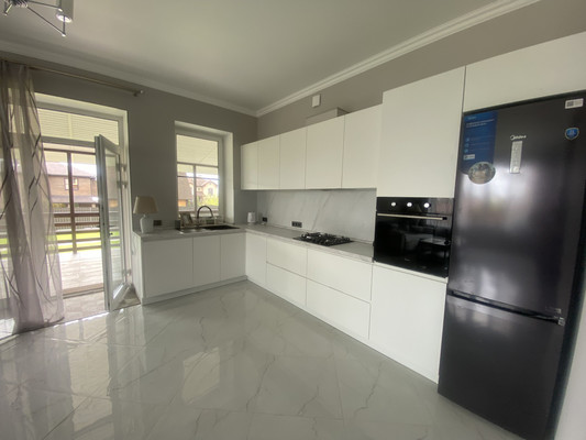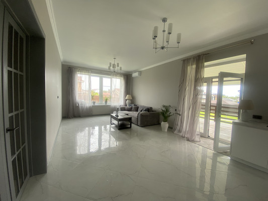 Дом имеет функциональную планировку, на первом этаже размещено 2 комнаты : одна комната мастер-спальня ( отдельный сан/узел и гардеробная) , вторая комната свободого назначения (спальня, кабинет, игровая и т.д.), большая гостинная, с выходом на террасу, кухня-столовая, оснащенная современной бытовой техникой и подсветкой, сан/узел и просторный холл, с видеонаблюдением.На втором этаже 3 комнаты свободного назначения с двумя сан/узлами, сауна и балкон.Между этажами красивая современная лестница с металическими перилами ,дубовыми поручнями и подсветкой.С солнечной стороны в комнатах установлены кондиционеры.Дом готов для проживания новых счастливых владельцев. Можно использовать под инвестиции,поселок активно развивается, что обеспечивает стабильный рост стоимости недвижимости.