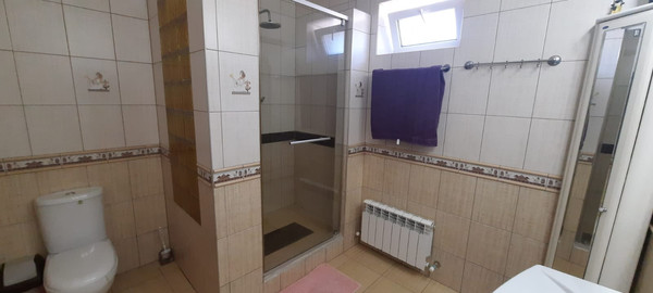 На участке расположены гараж (7×6,5 м), теплица, зона для барбекю, летний душ, туалет, хозяйственные постройки, небольшой огород и двор с тротуарной плиткой. Здесь растут виноград, инжир, черешня, груша, яблоня и слива.
