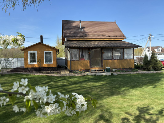 Арт. 107426413 К продаже представлен полностью продуманный для комфортной, круглогодичной жизни дом, в окружении берез. Все коммуникации подведены, подключены и прекрасно функционируют. Вода скважина, система очистки воды, отопление-двухконтурный газовый котел (магистральный газ), водоотведение-септик (3 колодца). Проводной интернет, видеонаблюдение по периметру участка, огорожен со всех сторон профлистом. Заезжай и живи! На 1-ом этаже дома находится кухня-столовая с выходом на террасу, сауна, душевая и туалет. На 2-ом этаже гостиная и спальня. Еще на участке есть гостевой дом 28 кв.м оборудованный своей кухней, санузлом и подсобным помещением. Все постройки и стоянка на две машины соединены отмосткой и окружены идеальным газоном с зоной огорода, где находятся грядочки и теплица (3,5х8м). Два асфальтированных въезда в огороженное ДНП оборудованы автоматическими воротами и видеонаблюдением. Большая часть соседей проживает постоянно. Поселок полностью асфальтирован, газифицирован, установлено видеонаблюдение по центральной улице. Регулярная расчистка дорог и вывоз мусора. 10 мин на машине до ж/д станции Радуга, сетевых магазинов. 15 мин до г. Бронницы. Один взрослый собственник, под ипотеку подходит. Звоните, записывайтесь на просмотр и Вы влюбитесь в это место!