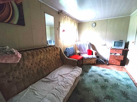 Арт. 109748708 Дом 6х8, 2 комнаты + кухня-столовая, двойные рамы, печка. Ухоженный участок 12 соток, полностью огорожен. Своя скважина. Баня с комнатой отдыха с кухней. Хоз. блок. Собственность. Межевание.