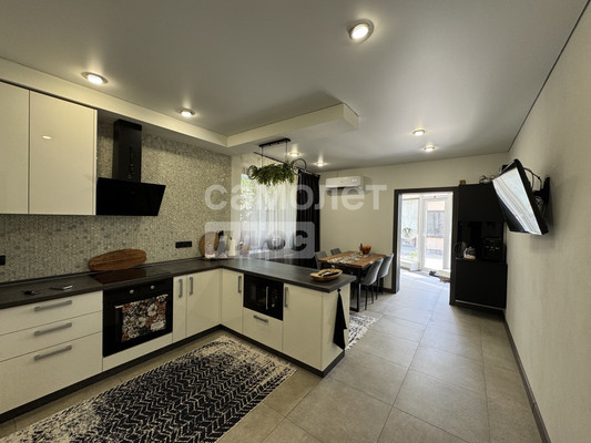 Входная группа с панорамным остеклениемКухня гостиная разделена на две зоны, Установлена кухня "МАЛИНА" с встроенной техникой, холодильник Bosch, варочная плита, духовой шкаф, посудомоечная машина, микроволновая печь Zigmund & Shtain