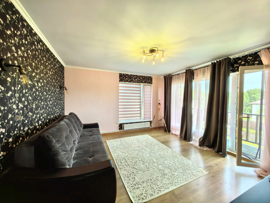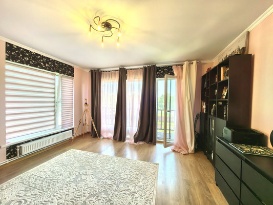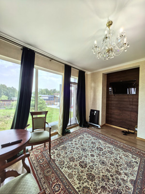 Планировка первого этажа: кухня -гостиная 32 м, спальня 13м, коридор 7м, туалет 4м. Из гостиной выход на открытую веранду с видом на баню и подъезд. Второй этаж: комната 17м, комната 15м, комната 14м, ванная комната 9м, гардеробная 4м, коридор. Имеется балкон. Мебель , кухня и бытовая техника остается будущим владельцам.