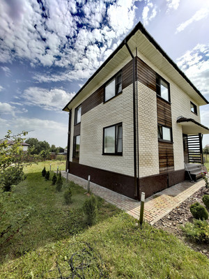 Дом 2022 года постройки из цельной конструкции СИП-панелей на свайном фундаменте , диафрагма жесткости 40*20. Фасад дома обшит клинкерным кирпичем и доской лиственницы. Дом очень теплый в зимнее время , сухой.