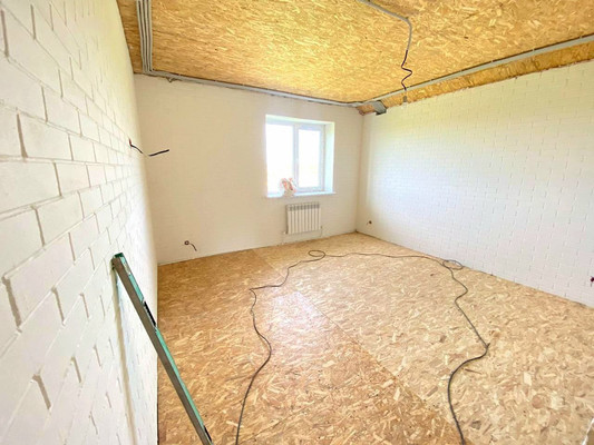 Первый этаж – большая гостиная, кухня, спальня, котельная, закрытый гараж, ванная-туалет.Лестница из сварной металлической конструкции. Второй этаж - 3 спальни, ванная-туалет.Большой чердак.Жилая площадь 180 кв.м + Гараж. Земли ИЖС
