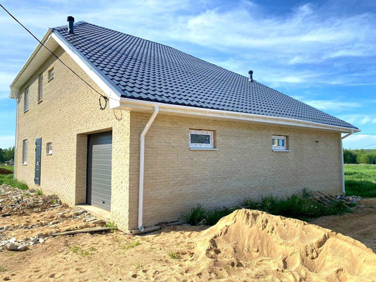 Фундамент - ленточный+плитаСтены - гиперпрессованный кирпичКрыша - толстая металлочерепица 0,5 смОкна пластиковые (двойной стеклопакет)ВодостокиПристроенный гараж