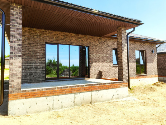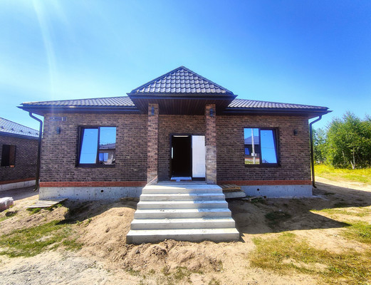 Кирпичный дом 125 кв.м. на участке 7 сот. Педчистовая отделка. Все коммуникации в доме (газ, свет, вода, отопление)3 раздельные комнаты + большая кухня – гостиная с панорамным остеклением и выходом на террасу.Гардеробная, котельная и ванная комната 5,4 кв.м. Участок ИЖС ровный, прямоугольной формы.