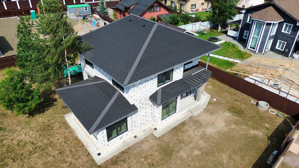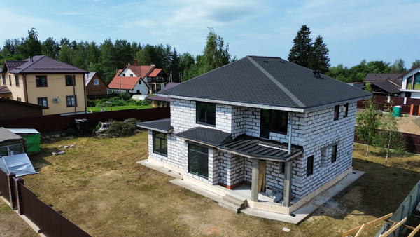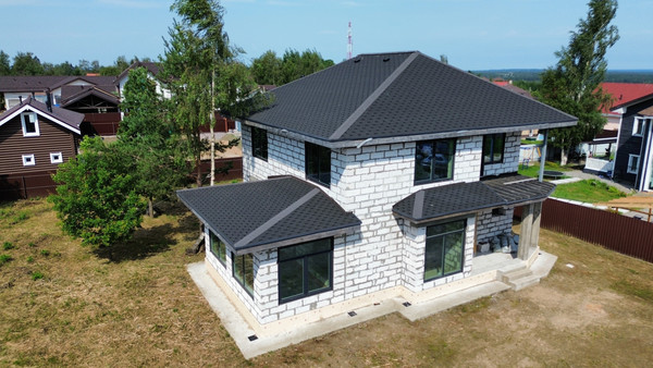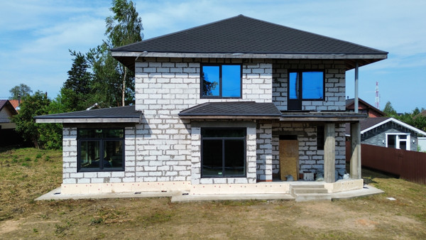 Вас встречает просторный дом с гостиной площадью 50 квадратных метров. В доме шесть спален и два санузла, технические помещения и террасы.Конструкция дома из газобетона под черновую отделку. Фундамент в виде бетонной плиты 30 см, качественные стеклопакеты со светоотражающим эффектом обеспечивают отличную звуко- и теплоизоляцию. ,переккрытия бетонные, утепленная кровля