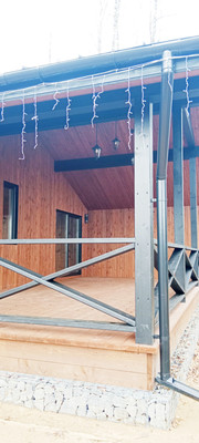 Что вас ждет внутри:- Общая площадь составляет 102 кв. м теплого контура и просторную террасу 40 кв.м.- Просторная кухня-гостиная с панорамными окнами и высокими потолками подарит вам ощущение свободы и света.- В доме две спальни с высокими потолками, что добавляет ощущение простора.- Санузел с отделкой из черного мрамора и подогревом пола. Сантехника уже установлена, так что вы можете сразу наслаждаться комфортом.- Панорамное остекление.- Качественное напольное покрытие SPC-кварцвинил (толщина 8 мм, 43-й класс стойкости): водостойкий, износоустойчивый и простой в уходе