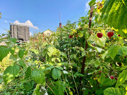 плодовые кустарники: малина, ежевика, черника, смородина (хорошо плодоносят, ягоды крупные)