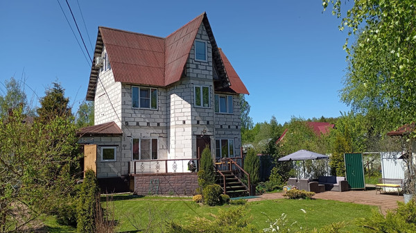 Арт. 118252913 Продается трехэтажный дом 162 кв.м на участке 6 соток в СНТ Дружба ,в 37 км от МКАД по Новорижскому шоссе и в 30 км по Волоколамскому шоссе. Дом построен из пеноблока, утеплен и предназначен для круглогодичного проживания, внутри отделка блок хаус, также у дома есть пристройка (9х6) для хоз. нужд. Первый этаж: Прихожая, кухня, просторная гостиная , санузел с ванной. Второй этаж: Эркер и две большие спальни. Третий этаж: просторная мансарда 54 кв.м. Коммуникации: Отопление -электрический котел. Водоснабжение- два колодца ( 15 колец ) Канализация-септик. Участок: Площадь 6 соток, на участке есть плодовые деревья, цветы , газон и закрытая просторная беседка с панорамными окнами. Проведен интернет (Оптоволокно) Дом