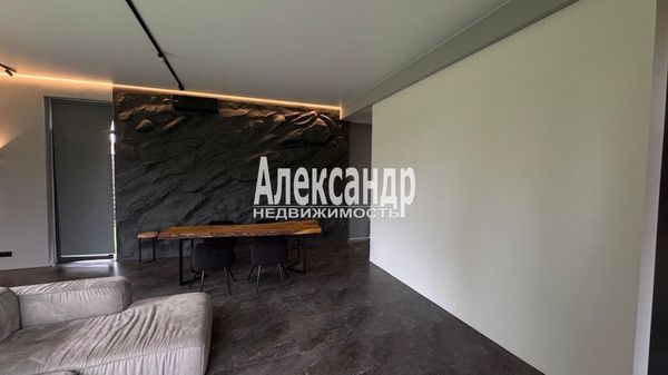 Вся мебель дизайнерская, отделка природный минимализм (стол спил дуба), кухня черная матовая, посудомойка, духовка, микроволновка, стиральная машина.