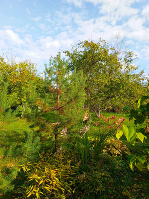 Озеленение: Участок не пустует — здесь растут плодовые деревья и кустарники, что создает ощущение уюта и зрелости владений.