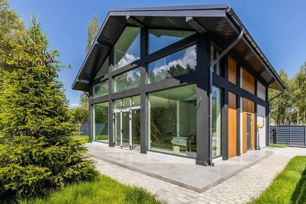 Дом построен по премиальной и одной, из самых надежных технологий - фахверк. Уникальная система остекления, увеличивает естественную освещенность помещений и превращает дом в изящный арт-объект (стекла, повышенной ударопрочности). В летний период времени, стекла отражают ультрафиолетовые лучи, что позволяет сохранить комфортный температурный режим, а в зимнее время, содержащийся в камере стеклопакета, аргон, препятствует его обмерзанию и теплопотере. Коттедж соответствует, современным стандартам энергоэффективности.