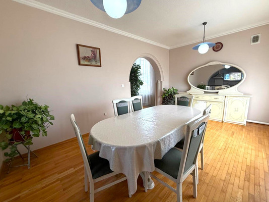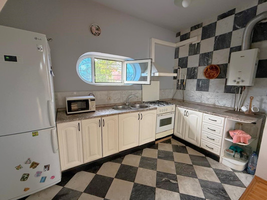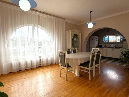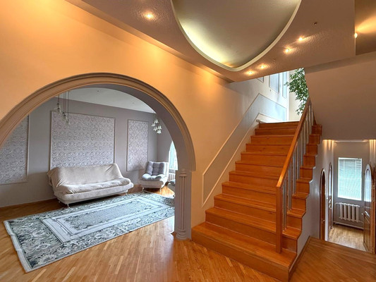 Дом построен из кирпича, высота потолков 3м., на полу плитка, паркет, двери, лестница из твердых пород дерева.