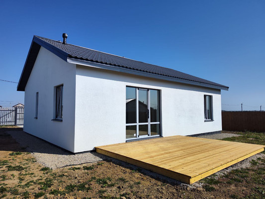 Тип постройки: одноэтажныйМатериал: газоблоки (толщина стен 400 мм)Крыша: металлочерепицаФундамент: ленточный, залит бетоном (марка М300)Окна: трехкамерныеУчасток: огорожен, сухой, правильной формыВорота: откатныеЗабор: из профлистаОписание дома: Этот дом спроектирован с учетом всех современных стандартов. Прочные газоблоки обеспечивают отличную теплоизоляцию и звукоизоляцию, а крыша из металлочерепицы гарантирует долговечность и защиту от неблагоприятных погодных условий. Просторные комнаты наполняются светом благодаря трехкамерным окнам, создавая уютную атмосферу для жизни. Планировка дома состоит из: прихожей, бойлерной, большой кухни гостиной, трех спален и двух сан узла. Так же у дома имеется терраса , где вы сможете проводить уютные вечера, наслаждаясь красивым закатом, или пить утренний кофе под пение птиц! Дом продаётся с отделкой под ключ! Все коммуникации на участке, в дом заведены, и разведены.