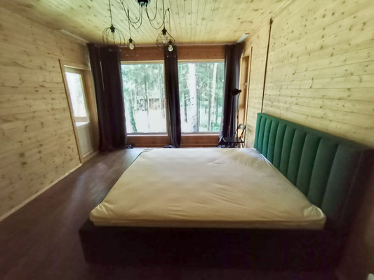 Комнаты с панорамными окнами, с видом на лес. Санузлы выложены плиткой, установлена дорогая сантехника.