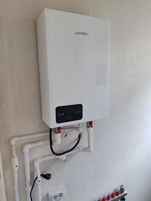 Арт. 120518203 Предчистовая отделка. Скважина 40 метров . 8 соток земли, фасад 20 метров, глубина участка 40 метров. Трасса 18м2. В доме тёплые полы и батареи, можно включать раздельно. Дом построен из керамзитового блока с утеплением.