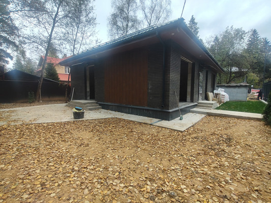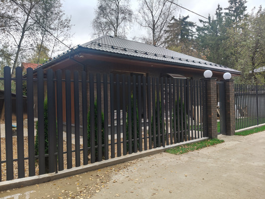 Арт. 122798947 Качество, надежность, удовольствие Одноэтажный стильный современный коттедж 106 кв.м на участке 4 сотки в городе Апрелевка Наро-Фоминского городского округа Московской области. Асфальтированная дорога до участка, откатные ворота с электроприводом, парковочное место, освещение. Комфортная, функциональная планировка:прихожая, гостиная-столовая, 4 спальные комнаты, санузел. Коммуникации заведены в дом и разведены:электричество 15 кВт;
