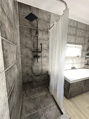 В доме электрическое отопление. Газ подведен, но разводку еще не сделали. Свет — 15 кВт, вода из скважины, по меже проходит центральная вода.