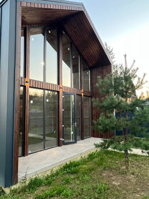 Арт. 123843420 Дом в cтилe Бaрнxауc с паноpамным оcтеклeниeм и высoкими пoтолками дo 7 мeтpов с зоной барбекю для круглогодичного проживания!