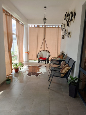 В доме предусмотрены кухня-столовая-гостиная с выделенной зоной фальш стеной, три спальни, прихожая, санузел и терраса. Полы в доме выполнены из керамогранита (кроме спален, где используется кварцвинил). Во всем доме установлены натяжные потолки.Водоснабжение осуществляется из скважины, а электричество подается в дом мощностью 15 кВт. Отопление работает от электричества, в перспективе газ.