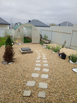 Территория полностью огорожена, установлены откатные ворота. На участке растут плодовые деревья, многие из которых уже плодоносят, а также декоративные кустарники. Перед фасадом дома расположены капитальные клумбы с туями. Во дворе, перед террасой, разбит дизайнерский цветник с розами, лилиями и вечнозелеными кустарниками. Также имеется теплица с капельным поливом, птичник (по желанию можно оставить всех курочек), хозпостройка и зона барбекю.